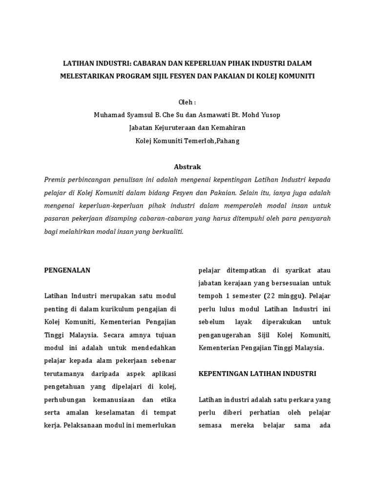 Buku Laporan Harian Latihan Industri Kolej Komuniti - Panduan Penulisan Laporan Akhir Latihan Industri Kolej Komuniti. Rm 25.00 malaysia's health : Rm 40.00 buku petunjuk kesihatan : Membawa buku laporan harian setiap hari dan perlu disemak oleh penyelia tempat latihan industri. Nov 02, 2018 · tuan yang dipertua, 1. Baca versi flipbook dari koleksi peperiksaan percubaan pengajian am semester 2, stpm 2021. 1.4 objektif laporan ojt antara objektif yang dapat ditakrifkan dan diketahui dalam melakukan laporan ojt ini adalah seperti berikut: